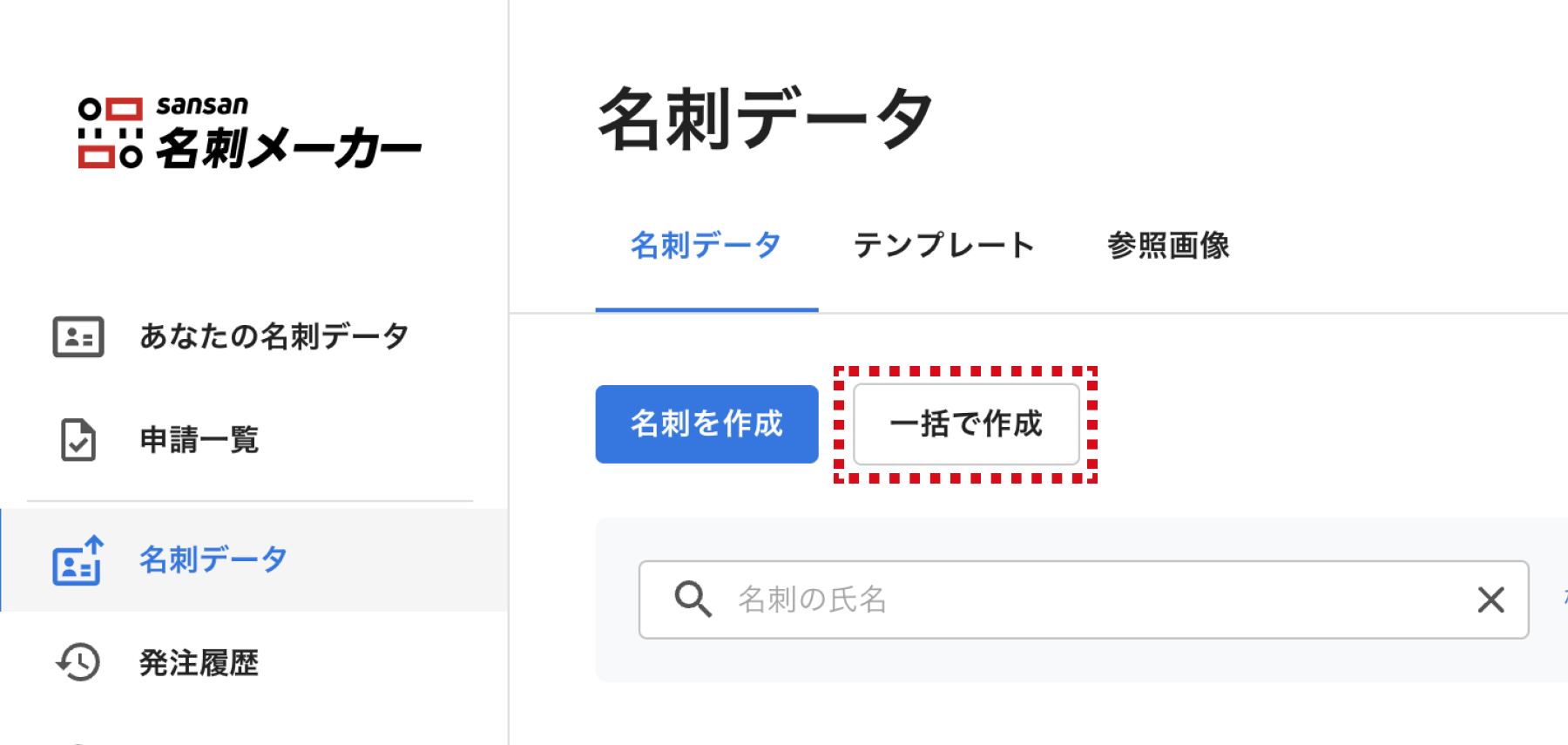 - [名刺データ画面]に遷移し、一括で作成ボタンをクリック